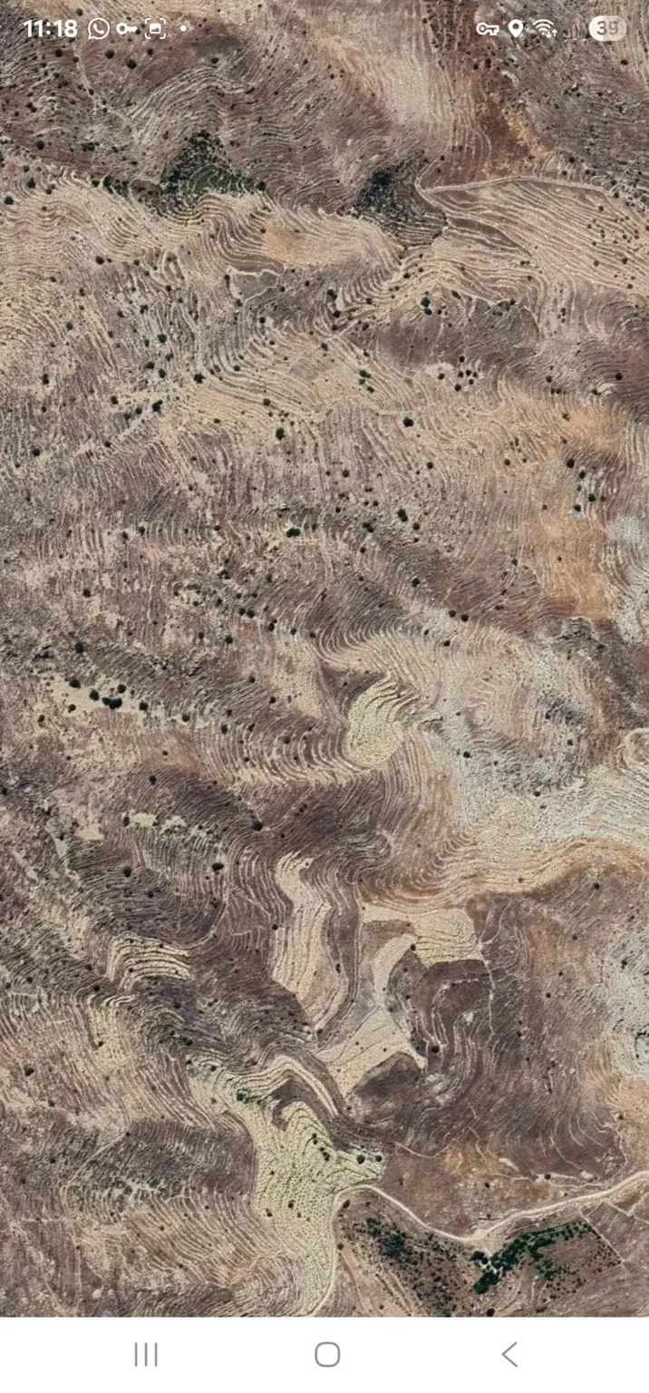 These vast ancient terraces on the foothills of the Zagros near Shiraz show the enduring mark of millennia‑old agricultural engineering in arid Iran. Contour‑parallel ridges shaped by human labor stabilized mountain slopes, retained runoff and sediments, and transformed the dry highlands into productive terrain. The patterned texture visible from above reveals the rhythm of human–earth co‑formation, where geomorphic design became a cultural legacy of resilience. The image records one of the most remarkable examples of anthropogeomorphic modification in Middle Eastern landscapes.