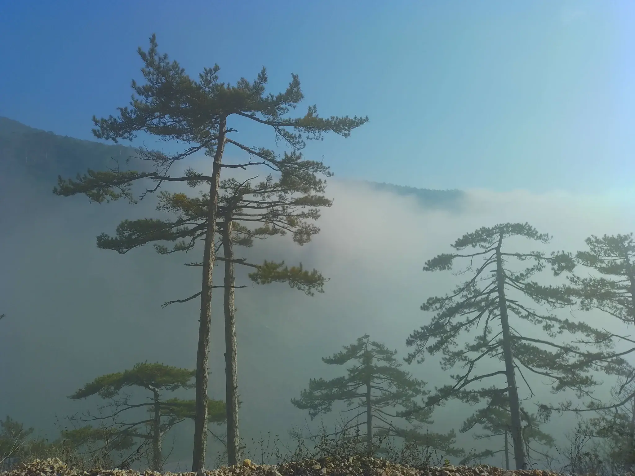 A misty atmosphere prevails background the trees, and the pure dynamics of nature inspire us, reminding us of the lie that humanity has never polluted the world.