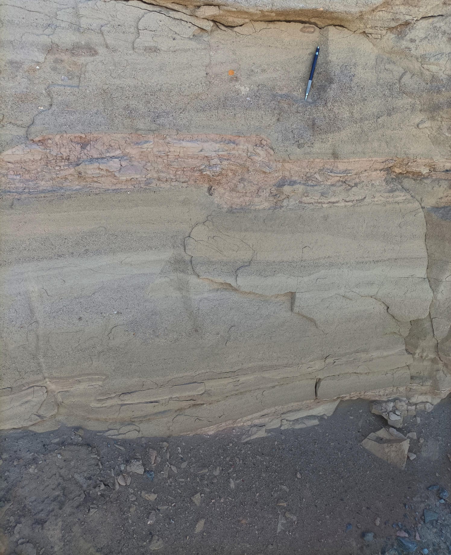 Mesoscale reverse fault displacing Late Miocene sandstones of the El Diablo Formation, Northern Chile.
