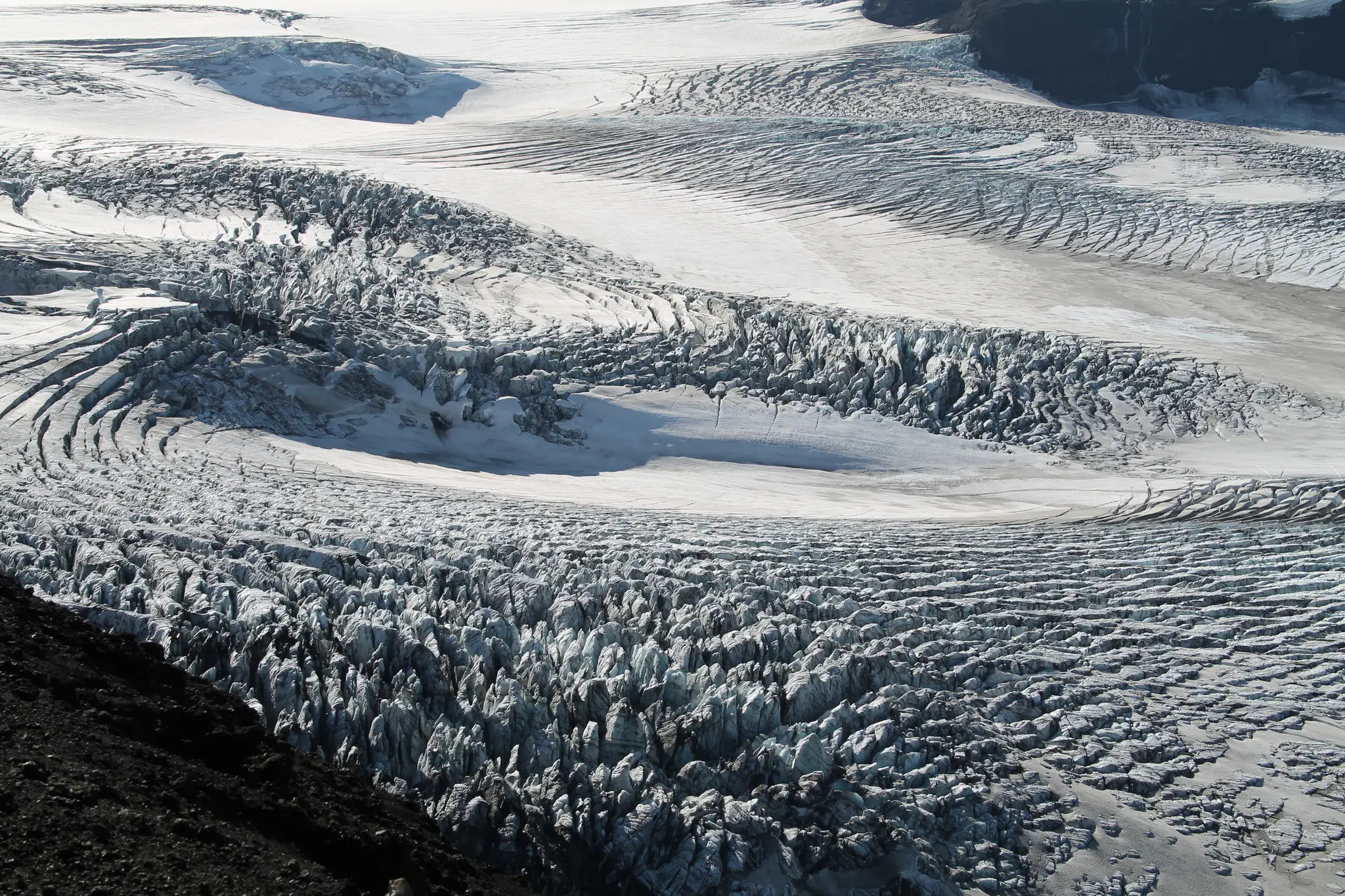 The crevassed surface of Entujökull, an outlet glacier of Mýrdalsjökull in south Iceland.