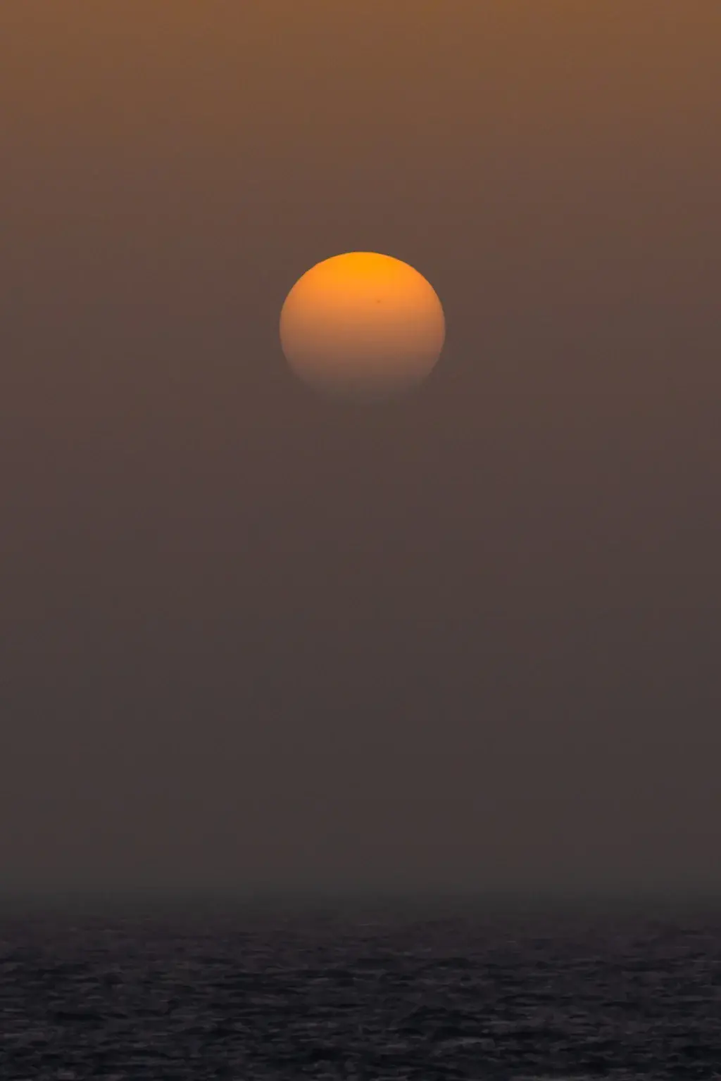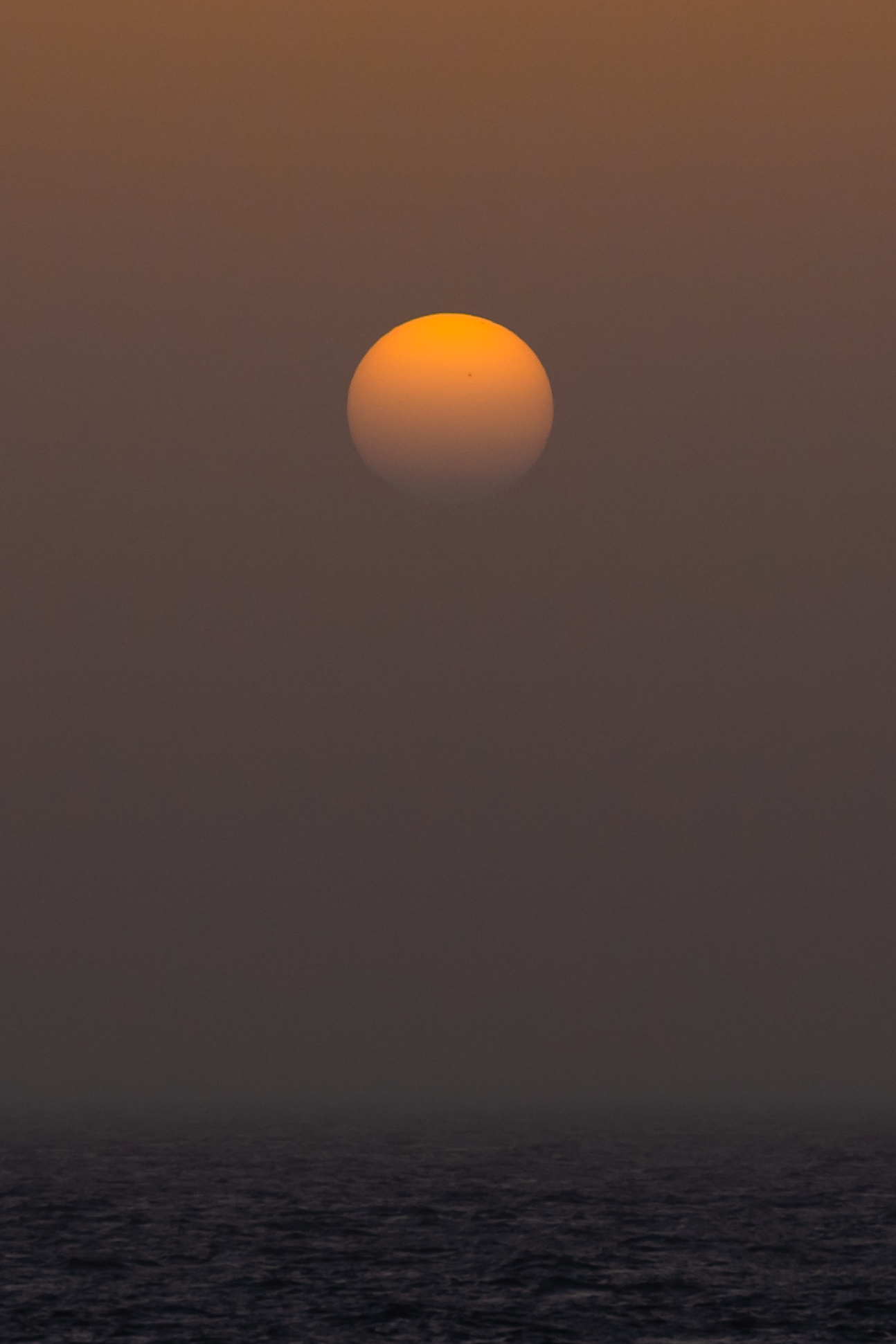 The sun sets in Saharan Dust over the Atlantic Ocean, near the Kap Verde islands.