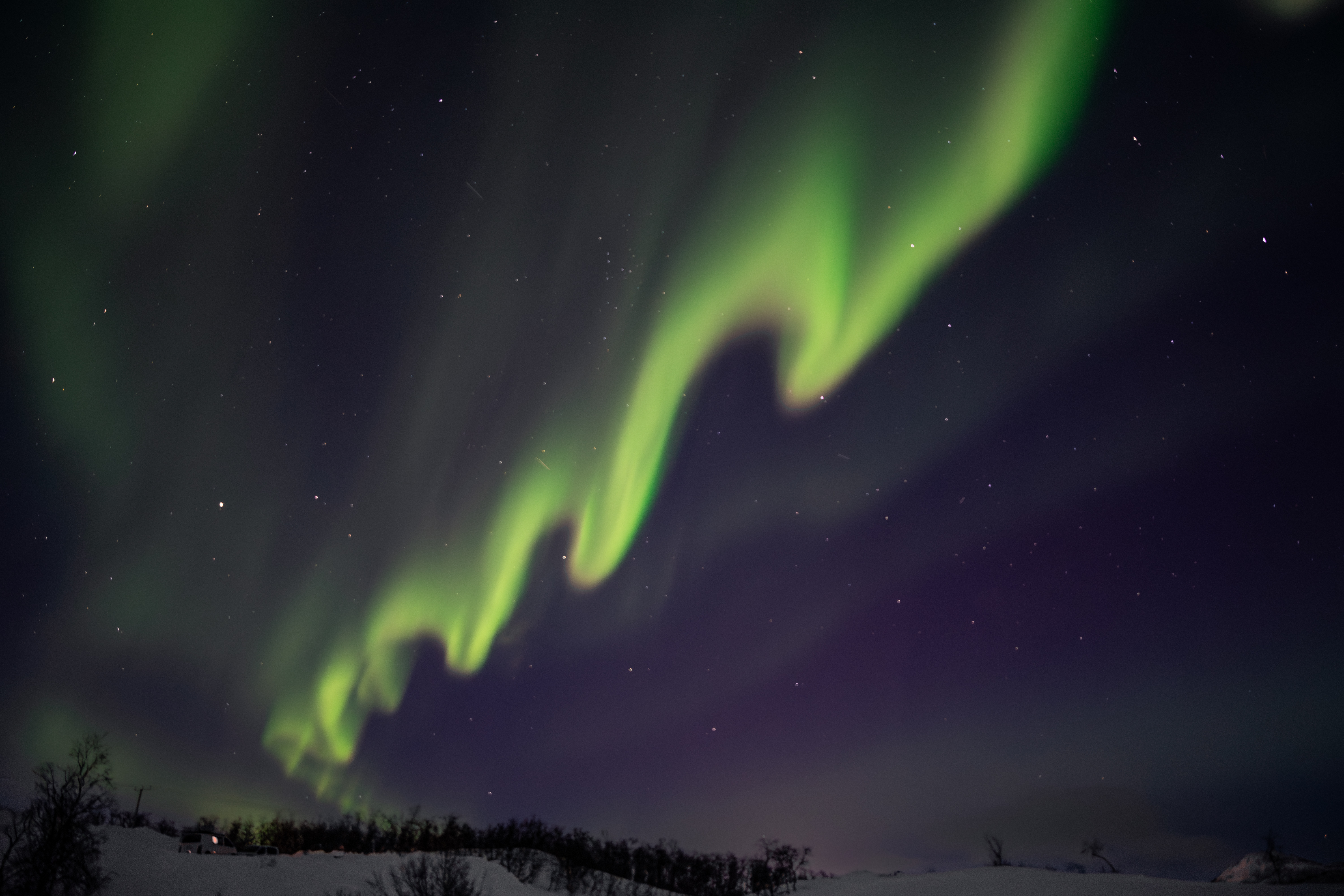 Auroral forms never cease to surprise us. This is a particularly spectacular example of auroral arc exhibiting so-called folds, which are mesoscale features in the auroral structures having a characteristic size of a few tens of kilometres and a lifetime of a couple of minutes at most. Their formation mechanism remains elusive, and ongoing collaborations between researchers and citizen scientists contribute to shed light on the mysteries of the dancing polar lights (see the ARCTICS Handbook and Field Guide for Citizen Science, https://doi.org/10.5281/zenodo.13931939)