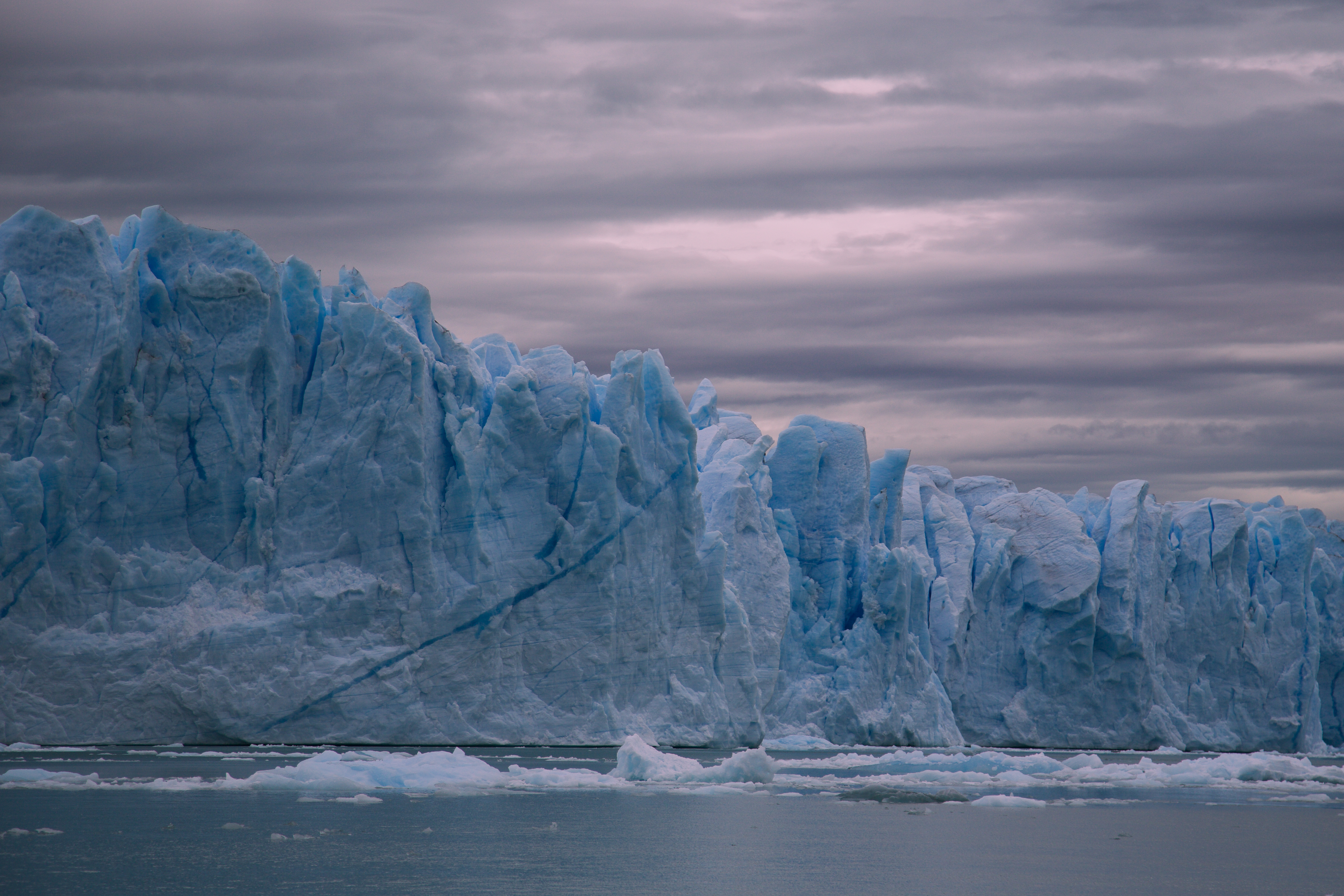 The Perito Moreno Glacier, in Santa Cruz province, Argentina, reveals intricate structures in the ice beneath a cloudy Patagonian sky. For decades, it was seen as an exceptional glacier because it resisted the retreat observed worldwide, but recent years have begun to show a different trend.