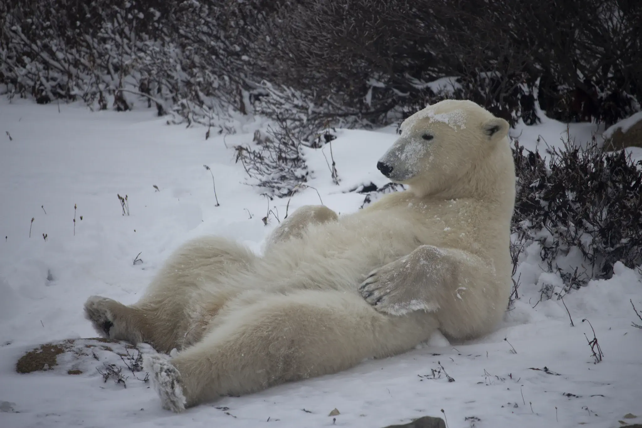 Polar bears (Ursus maritimus) depend on sea-ice as a platform for hunting seals and acquire most of their energy resources during a short period in late spring to early summer. The Tundra near the town of Churchill, Manitoba is the terrestrial “summer-home” of the West Hudson polar bears, as they await the formation of sea-ice over Hudson Bay. While on land, polar bears mostly fast or eat vegetation with limited energetic benefit compared to their blubber-rich, energy-dense seal diet. Climate warming is extending the ice-free periods in western Hudson Bay, forcing polar bears to remain on land for longer time periods.