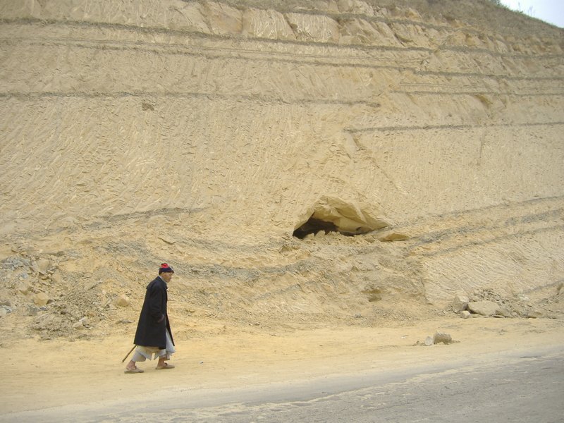 On the way from Goulmima to Tinghir (Morroco) we were just “absorbing” the spectacular greatness of Mother Nature. We were seeking yet another new geomorphological features between great faults, gorges, folds, ergs… Totally oblivious, this (perhaps) berbere walks on the same path that is being using thought is life. Oblivious of Nature forces!